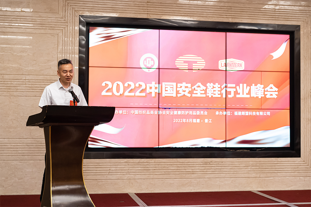 2022年8月8日,中国安全鞋峰会在美丽的海上丝绸之路起点---泉州隆重举行。此次活动由中国纺织品商业协会安全健康防护用品委员会主办,道诚集团旗下福建朗盟科技有限公司承办。会上邀请了行业知名安全鞋企业,经销商,材料商以及产业投资人参加。大家对现阶段商业模式、行业发展现状、未来产品趋势与绿色低碳转型发展等话题进行分享与对话,共同规划行业未来发展宏图。